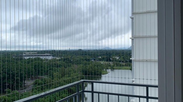 Invisible grills are the modern alternative to bulky iron bars. Using high-tensile stainless-steel cables and secure fittings, we create a slim, almost invisible barrier that keeps children, pets and belongings safe from falls, without making your home feel like a cage.