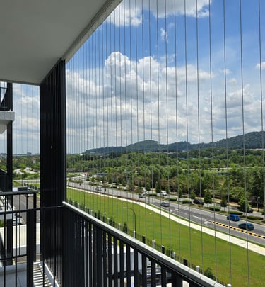 An invisible grill is a safety barrier made with thin stainless steel wires.